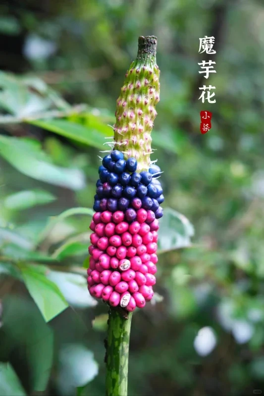 这些花卉形态各异,魔芋花奇特少见,萱草艳丽夺目,一年蓬清新淡雅,美人蕉色彩鲜艳,蓝雪花清幽素净,各有独特美感。